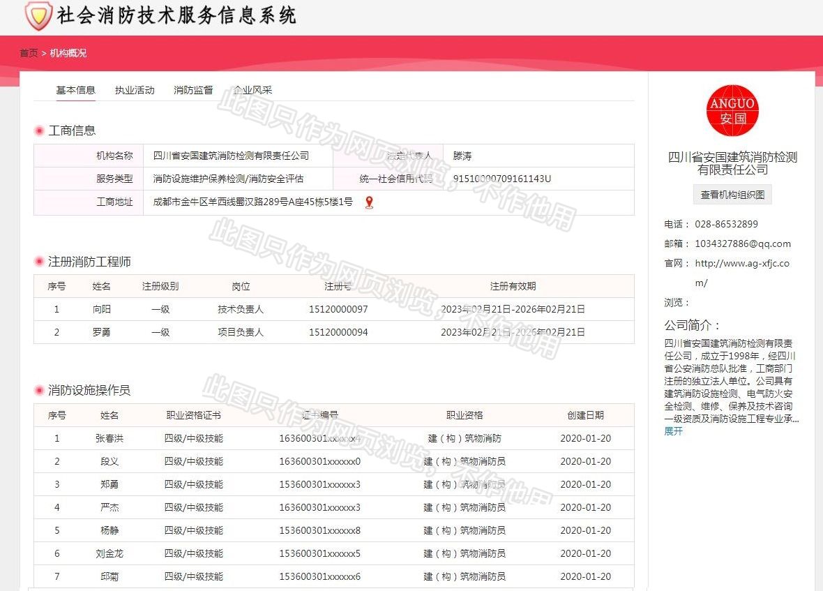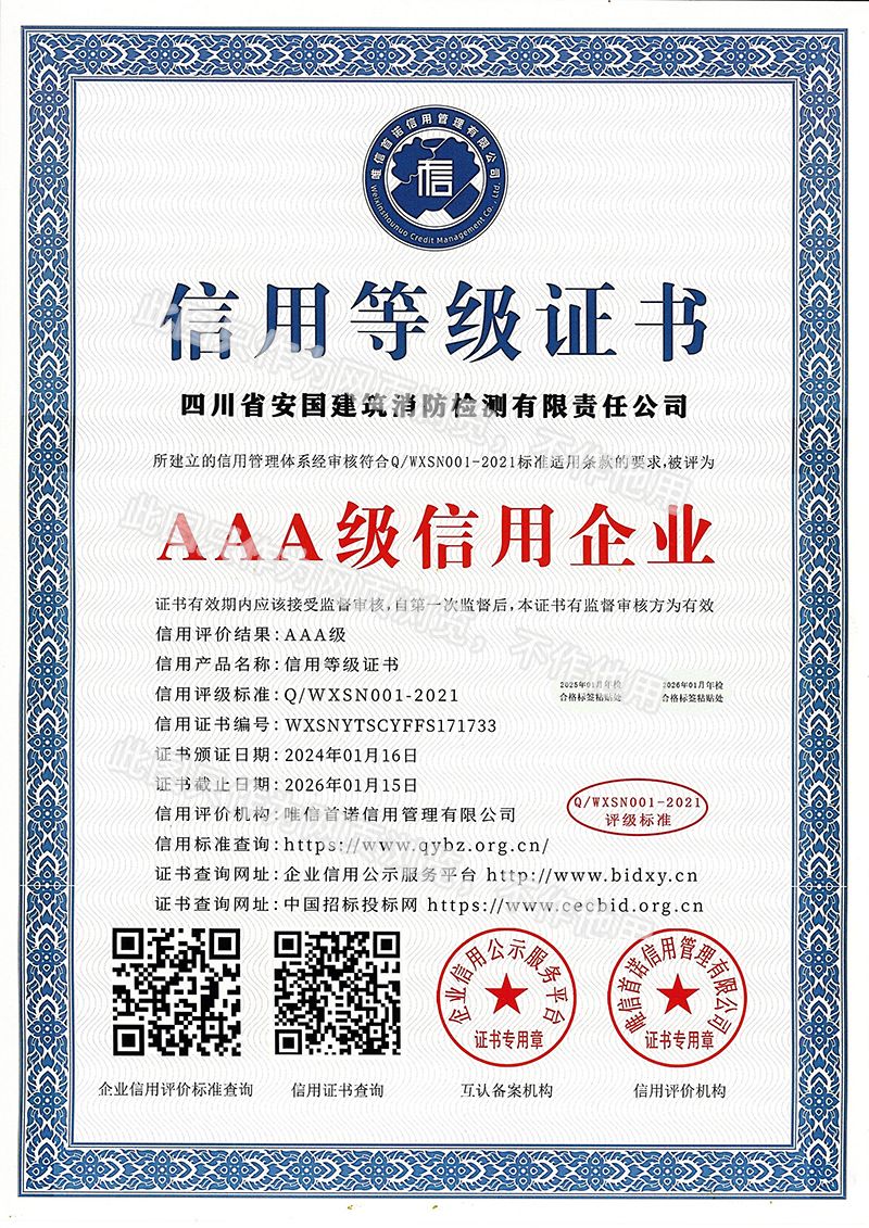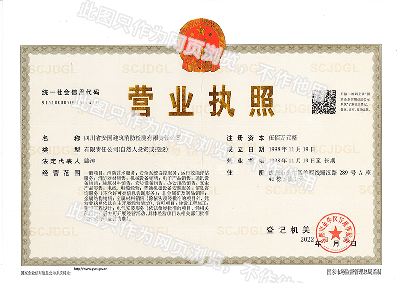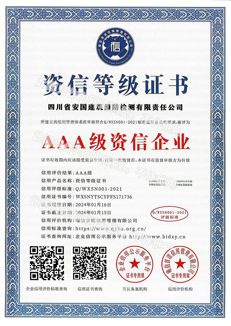 四川省安國建筑消防檢測有限責任公司,成立于1998年,經四川省公安消防總隊批準,工商部門注冊的獨立法人單位。